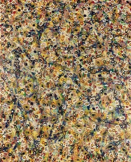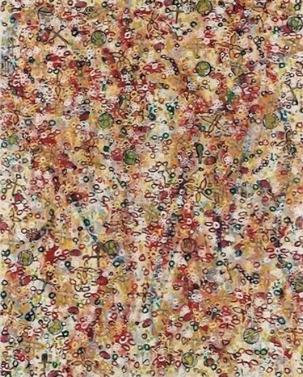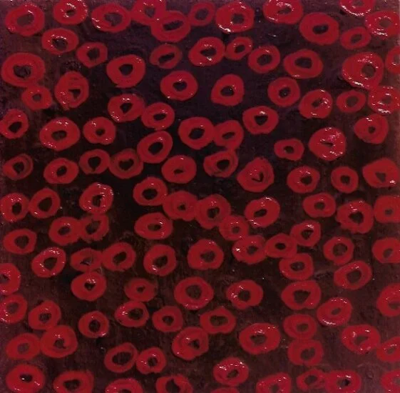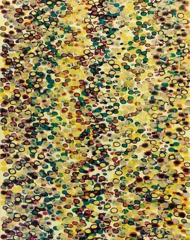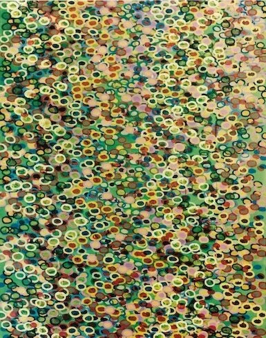 In many of my paintings, circles create boundaries within an empty space, the canvas. In these paintings multiple circles act as a veil, concealing the empty space to create an illusion of an unfamiliar landscape, out of time and place.