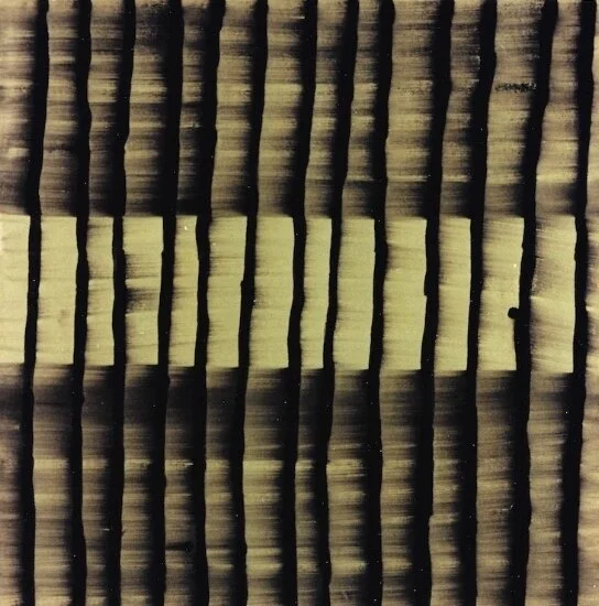 The paintings in The Land of the Blind, are made of unconventional materials - tar, oil paint and varnish. They were made with the intention of rethinking the role of abstract painting. They offer an intense dialogue between their constituent elements: stripes and circles, and the sticky consistency of the tar.